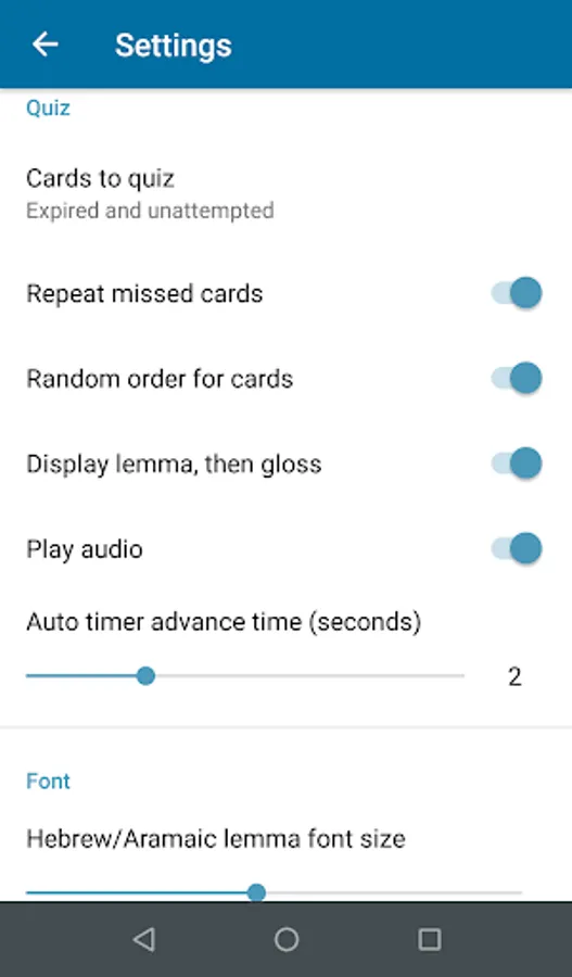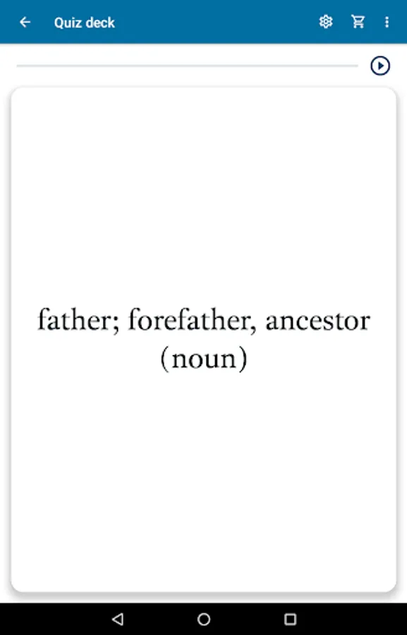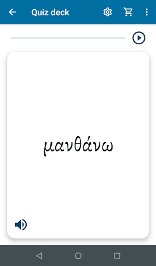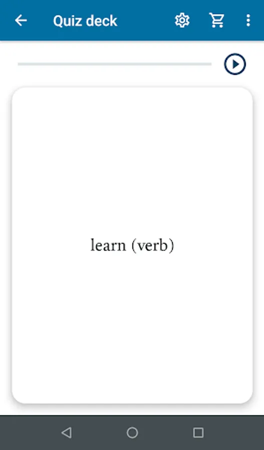 The Leitner system of spaced repetition helps you master and retain vocabulary efficiently and effectively. The app keeps track of how thoroughly you have mastered each word, and spaces how often you see each accordingly. Cards that have been firmly mastered are displayed rarely, and cards that have not been mastered show up much more often. You can adjust how frequently cards appear at each level of mastery. You also have the option to quiz all of the cards in a deck, regardless of how well you have learned them thus far.