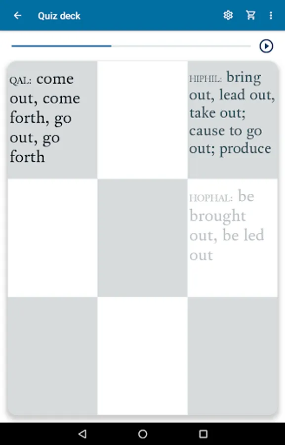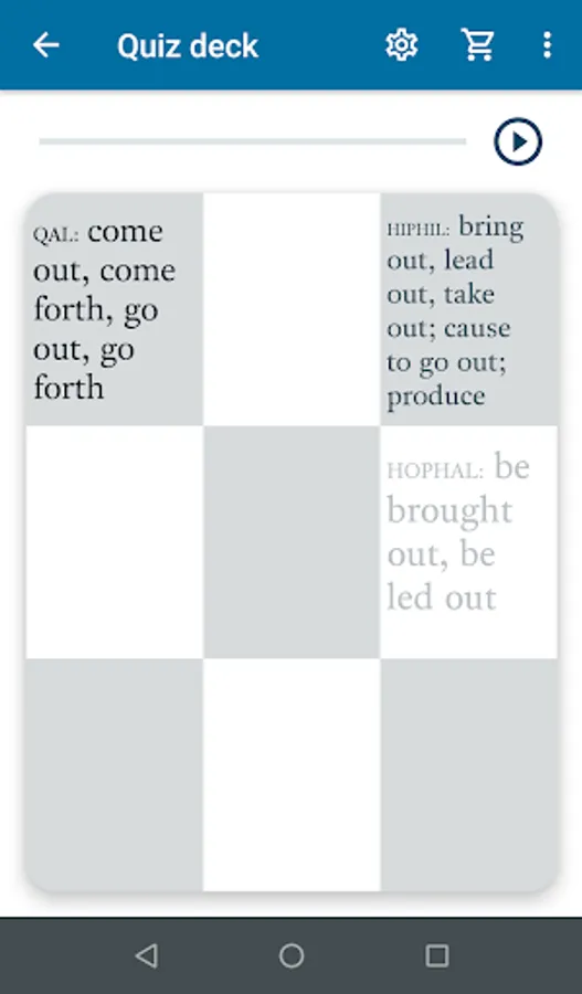 Babel Flashcards: Biblical Greek, Hebrew, Aramaic is a comprehensive flashcard app for students of the biblical languages. Use it to help learn the vocabulary of the Hebrew Bible/Old Testament and Greek New Testament. Features include: