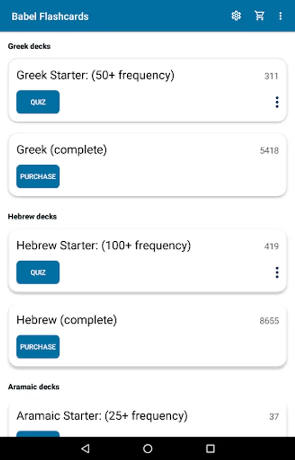 • Free starter decks with high-frequency words for New Testament Greek, Biblical Hebrew, and Biblical Aramaic