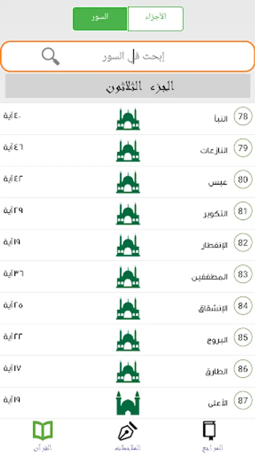 - يمكن كتاية ملاحظات علي اي جزء او سورة