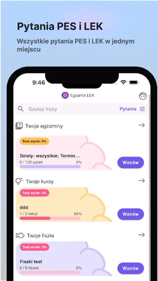 The EgzaminLEK application is an integral part of the EgzaminLEK.pl platform. You will find here: