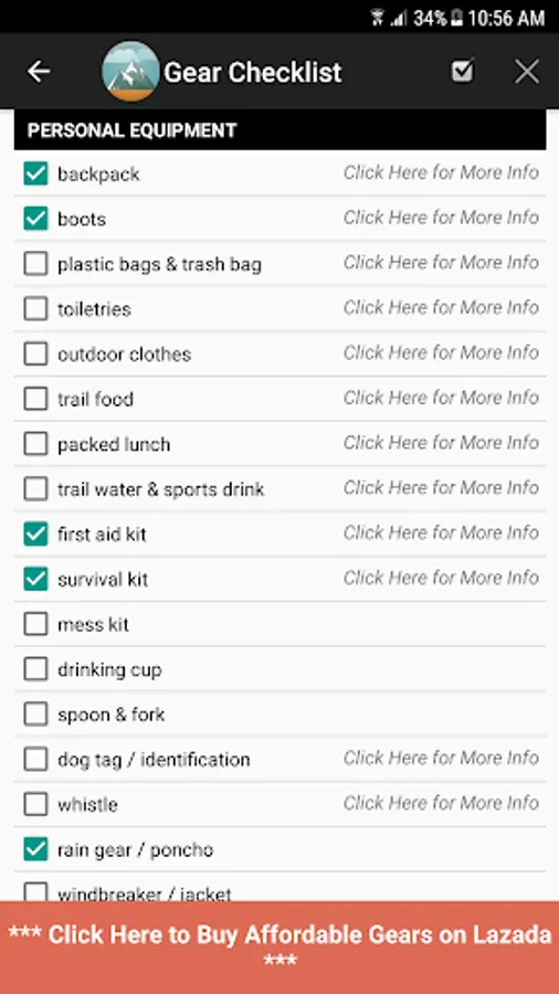 • Use this checklist before you go out for a hike, to make sure you didn't forget anything!