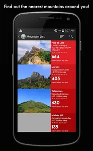 • Mountains can be sorted alphabetically, by elevation, by climbing difficulty, or by location (Find out the nearest mountains around you!)