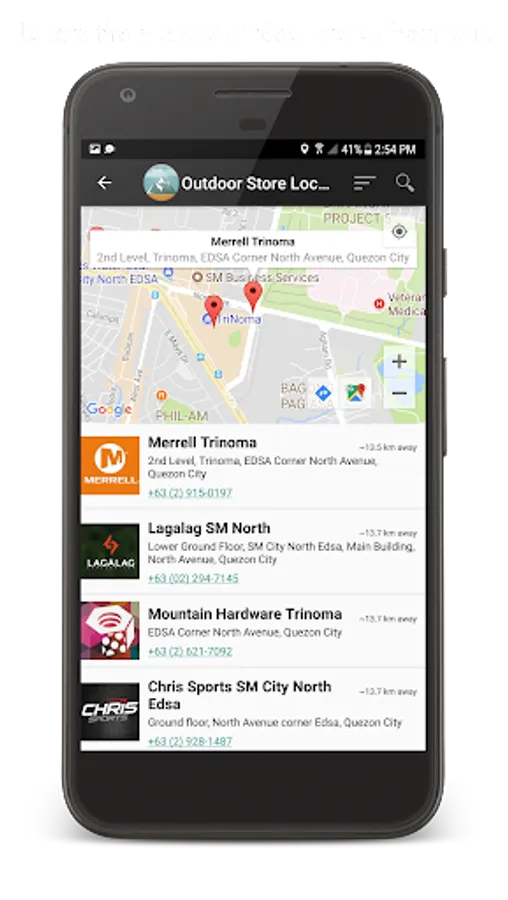 • Find out the nearest stores from your location where you can shop for your hiking backpacks, clothing, jackets, tents, sleeping bags, equipment, gear and accessories from top brands such as Deuter, Merrell, Mountain Hardware, Columbia Sportswear, Chris Sports, and Lagalag, among many others!