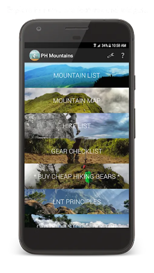 • Shows a quotation every time you open the app (about mountains, nature, adventure, and the great outdoors)