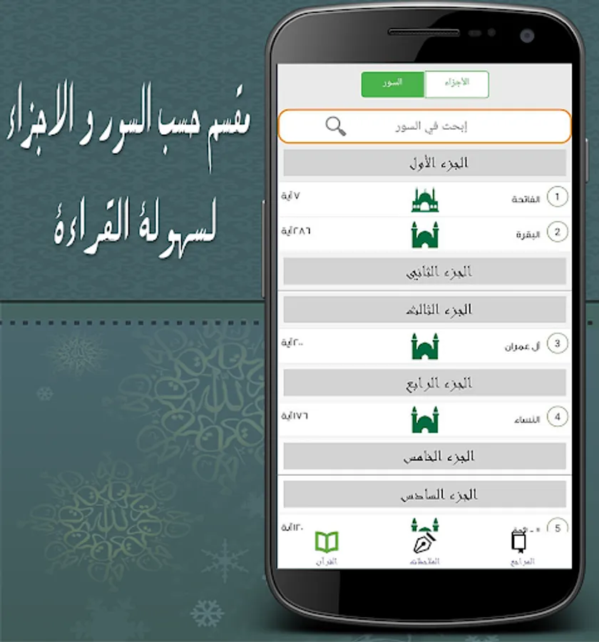 القران مقسم حسب السور و الاجزاء