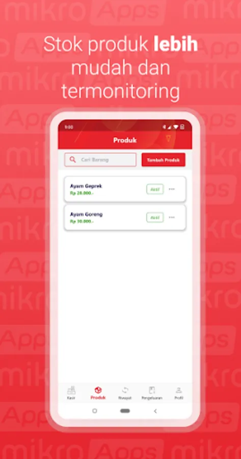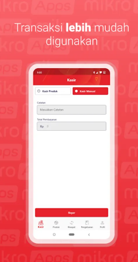 Cashier application that helps micro merchants in entrepreneurship to facilitate financial transactional for traders. MikroApps aims to help micro merchants in transactional, venture capital and business guidance. So that the MSME program is created digitally.