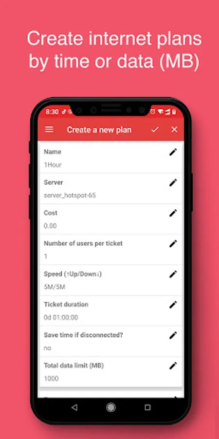 • You can create tickets by time (one hour, one day, etc.) according to the time you want to sell or share your internet.