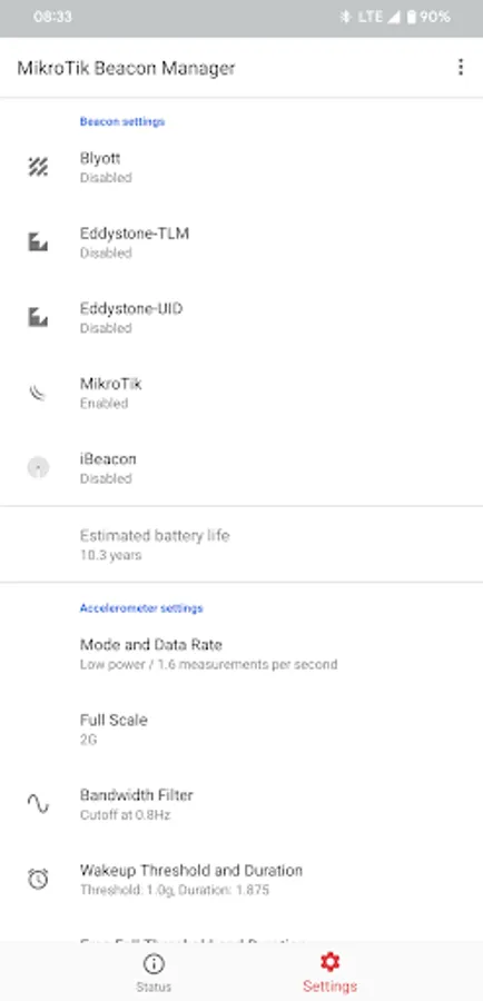 MikroTik Beacon Manager application is designed for Bluetooth tag (TG-BT5-XX) configuration. Since the tags are Bluetooth-based devices, you have to enable Bluetooth on the phone before proceeding with the configuration.