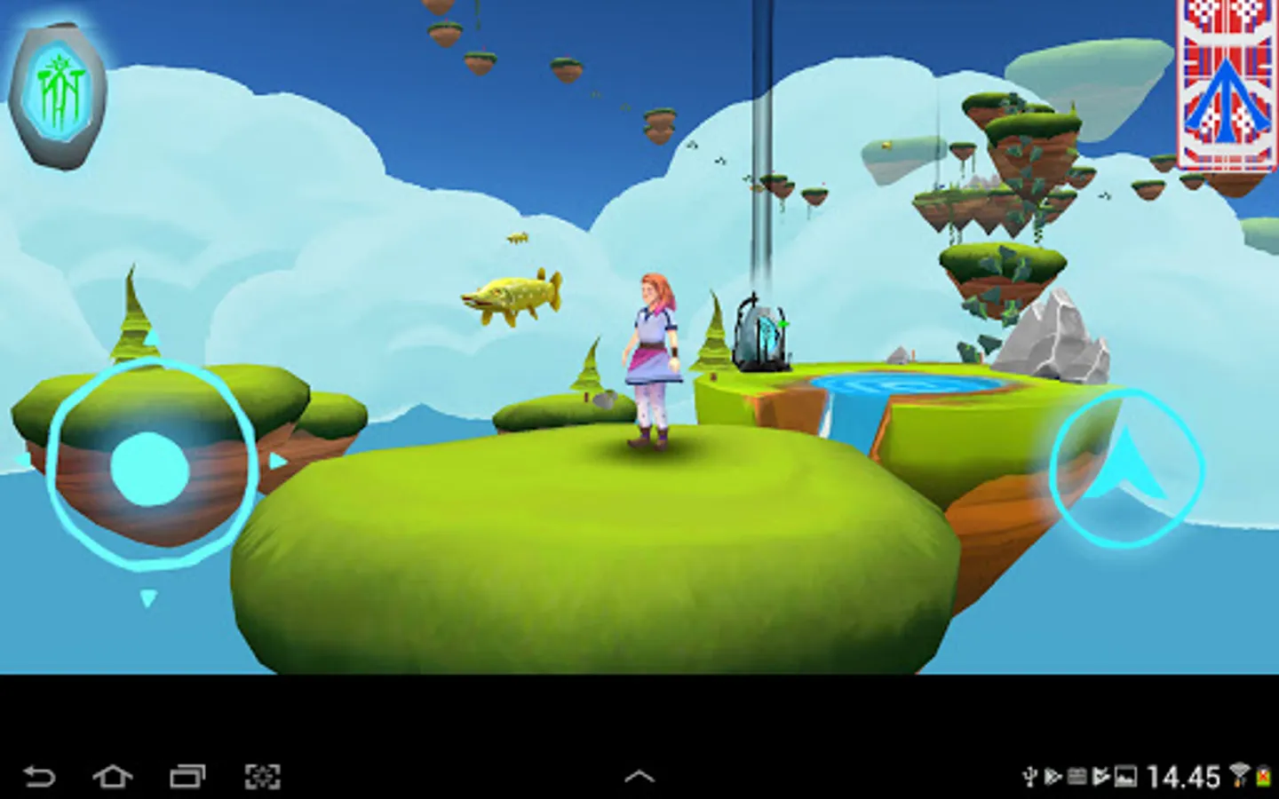 The resourceful and brave shaman girl, Raanaa, finds out about this and starts saving Máttaráhkká. Raanaa finds the entrance to the Sáivu kingdom at the bottom of a lake. There in the Sáivu kingdom, Raanaa must jump on floating islands to collect various colored elements from the thunder god Horagalles. The rainbow arrows of Horagalles help Raanaa regain the colors of the Sáivu kingdom and find their way to Máttaráhkká.