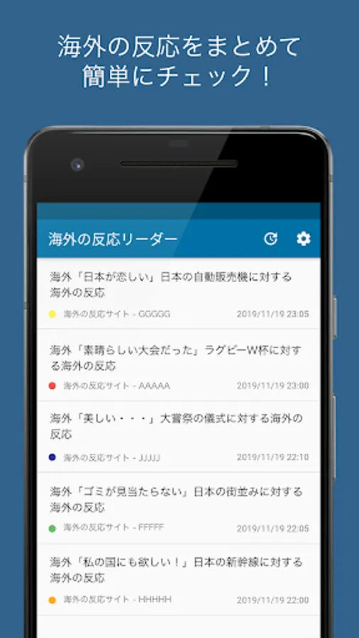 You can check articles from sites that summarize overseas responses in order of update time. It is designed so that you can concentrate on checking the site by implementing minimal functionality.