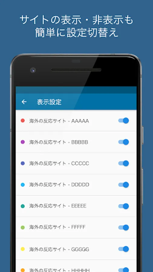 You can switch between displaying and hiding the summary site on the settings screen. You can use the app more comfortably by hiding information on sites that do not suit you.