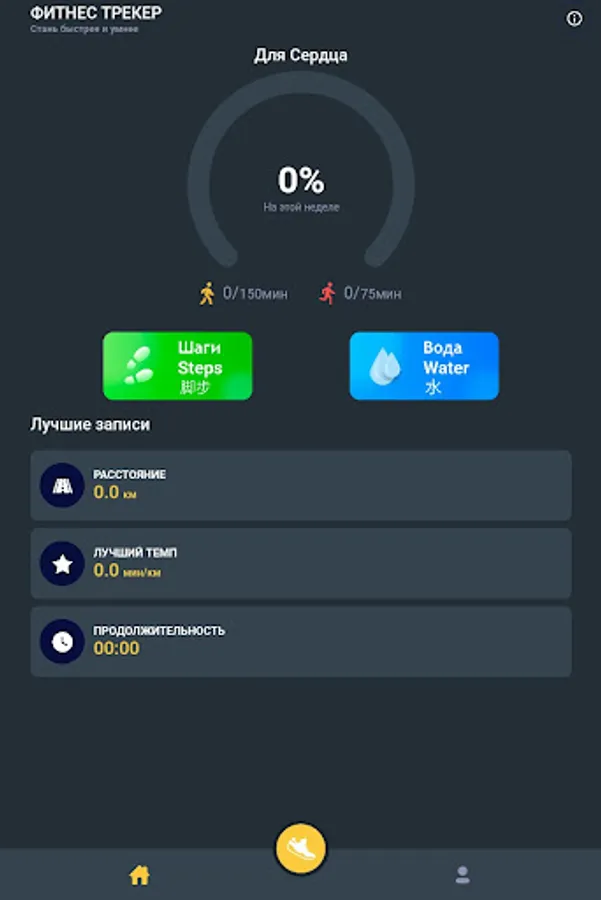 The app saves a report of your activities, records by date, measures full progress, which includes total distance traveled, total hours and total calories burned, as well as an average pace, tracks your weight and records heart status, measures water consumption every day.