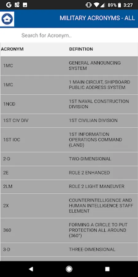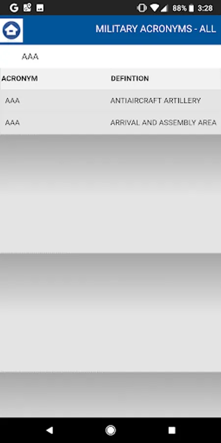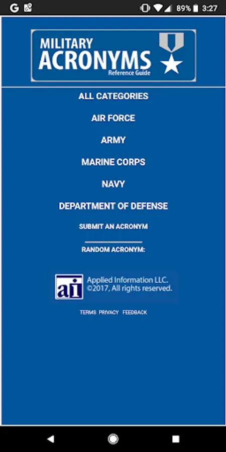 The APP provides assistance in understanding the thousands of acronyms and terms used in everyday military work life.