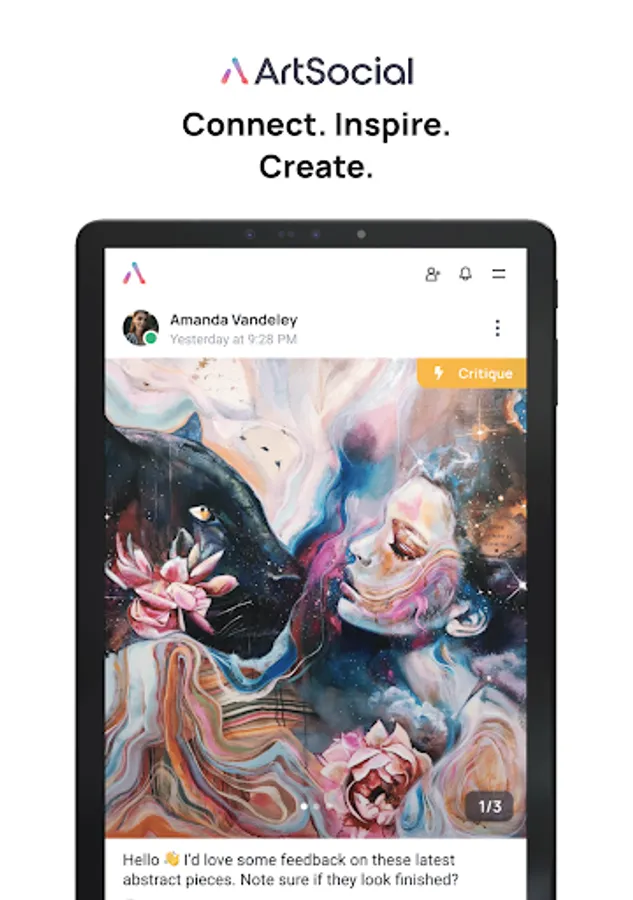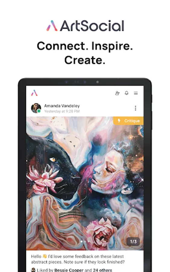 This is a place you can connect with and grow alongside other artists. You’ll be able to share your art, get feedback and critiques, and create a portfolio to display to the world.