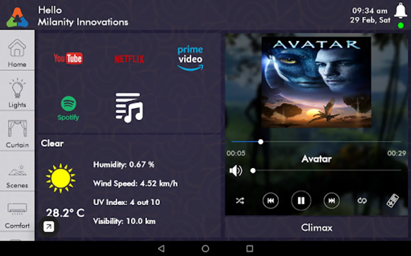Milan Symphony app is dedicated to enabling exceptional entertainment experiences. It offers integrated control of audio-visual devices and media. The app offers a user-friendly and attractive interface that can delight users at the touch of a button.