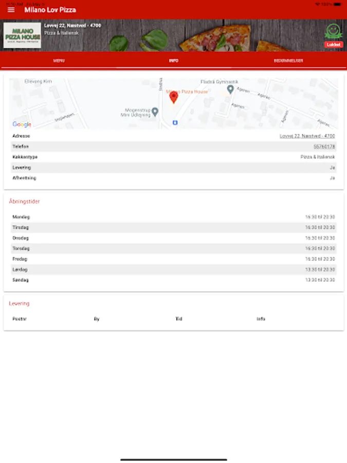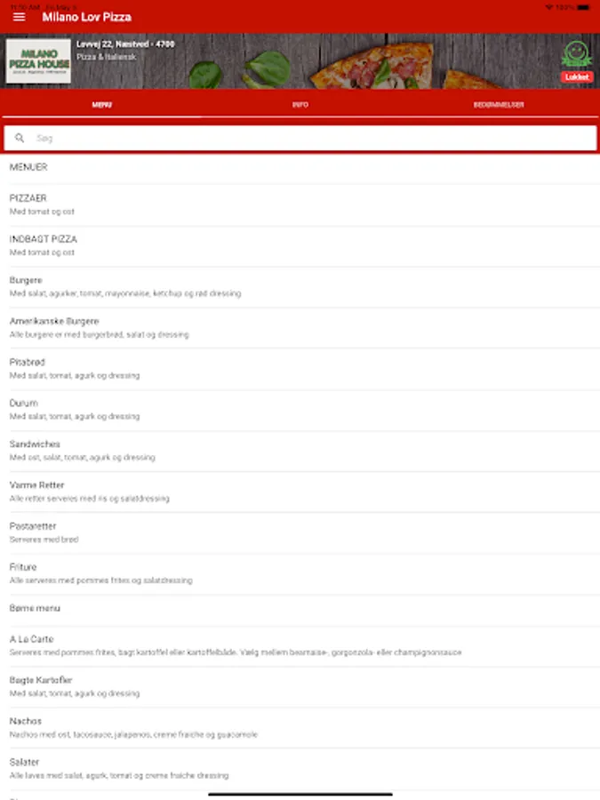 Bestil pizza, burger, pasta, m.m. med få tryk, nemt og hurtigt!