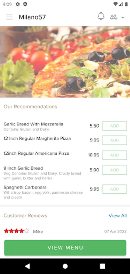Thank you for visiting Milano 57 in Deepcut. We hope you enjoy our online ordering app and your food.