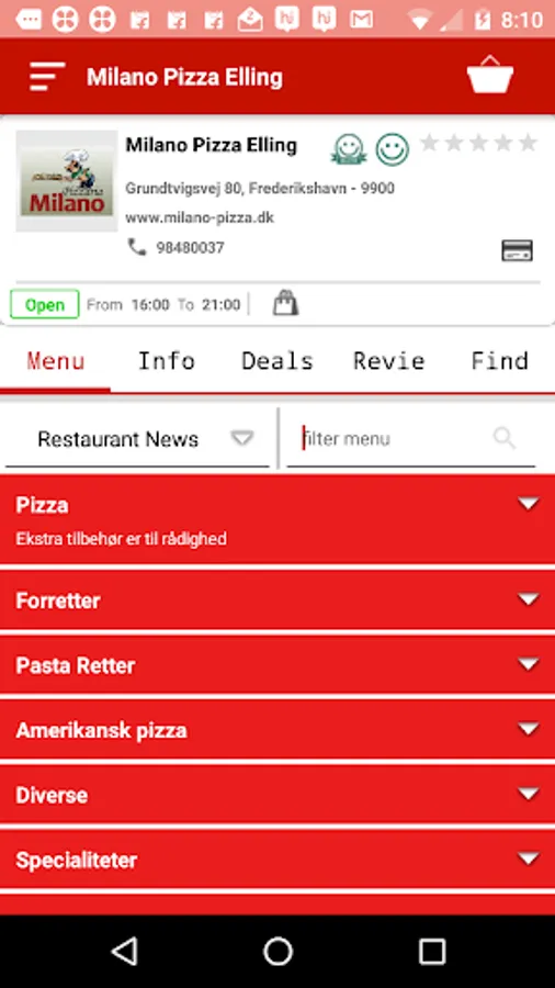 Bestil din mad online fra din favorit restaurant med Milano Pizza Elling gratis app.