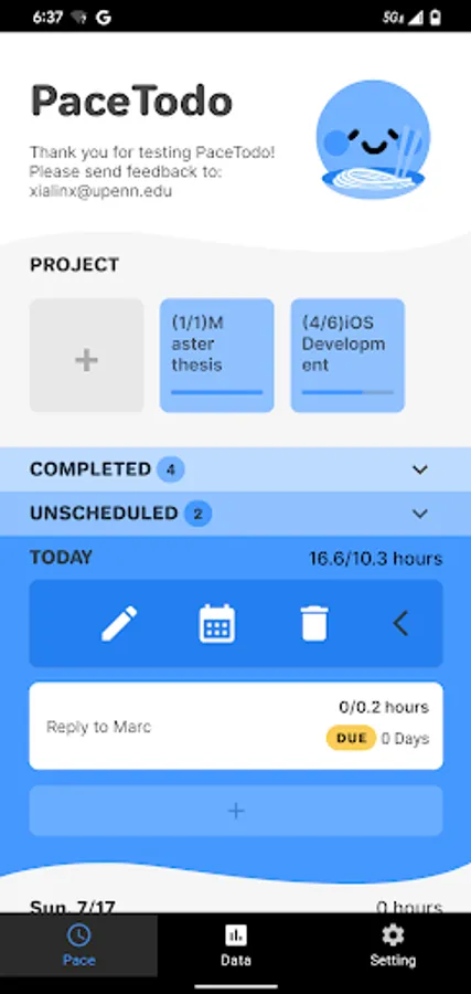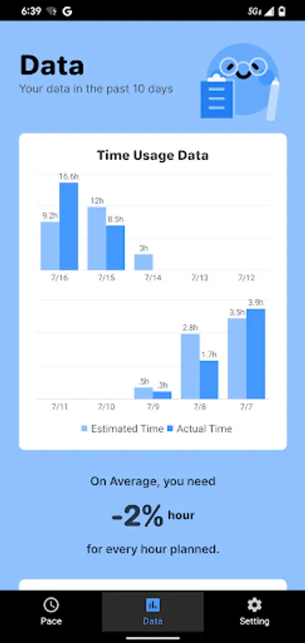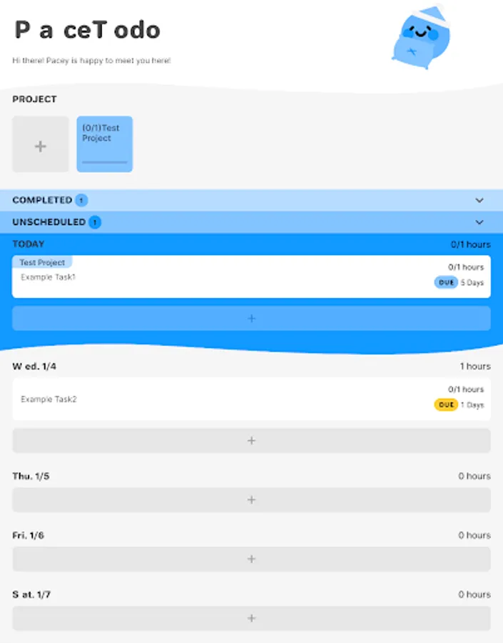 PaceTodo is a 7-day task tracker that helps you to improve time perception! PaceTodo tracks each task's Estimated Time and Actual Time Spent and predicts potential delays based on your weekly performance.