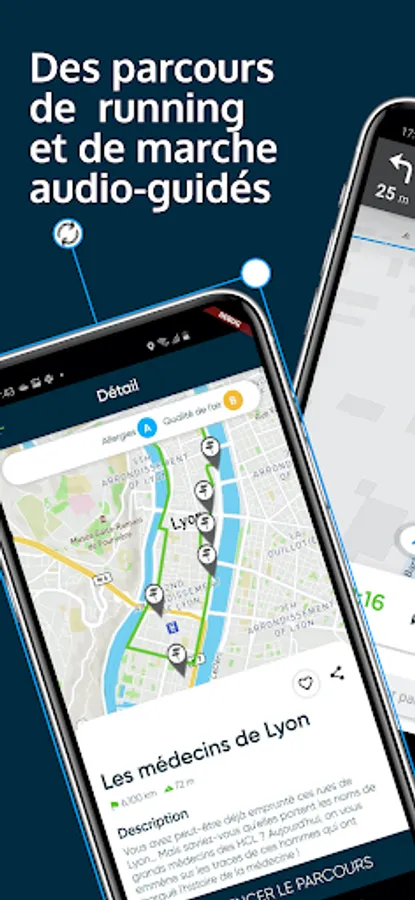 Audio-guided 5 to 10 km running and walking routes, starting from the hospital, for those who want to go for a run or walk in the morning, during their lunch break or when leaving work. All the remarkable points on the way are commented on so that the body and the head work.