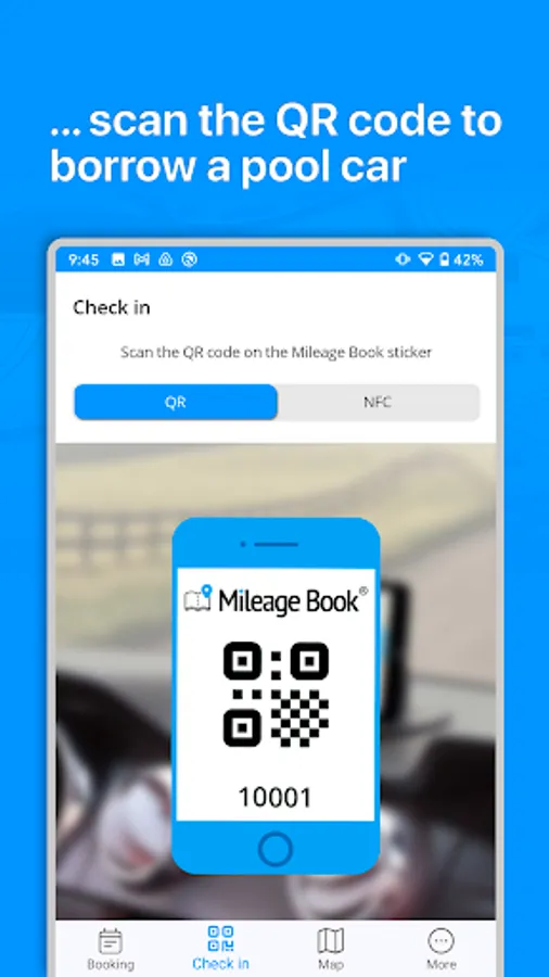 You can easily borrow a pool car with the app. Get into the pool car and scan the Mileage Book sticker with the app. Then you are ready to drive.