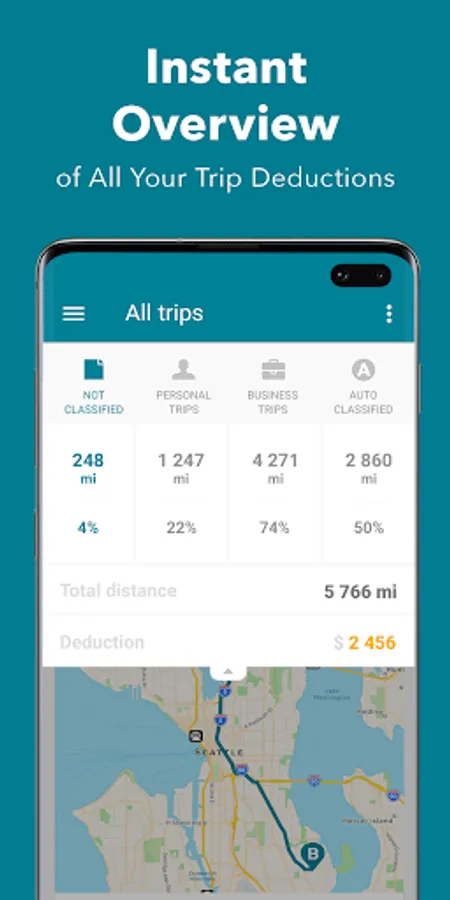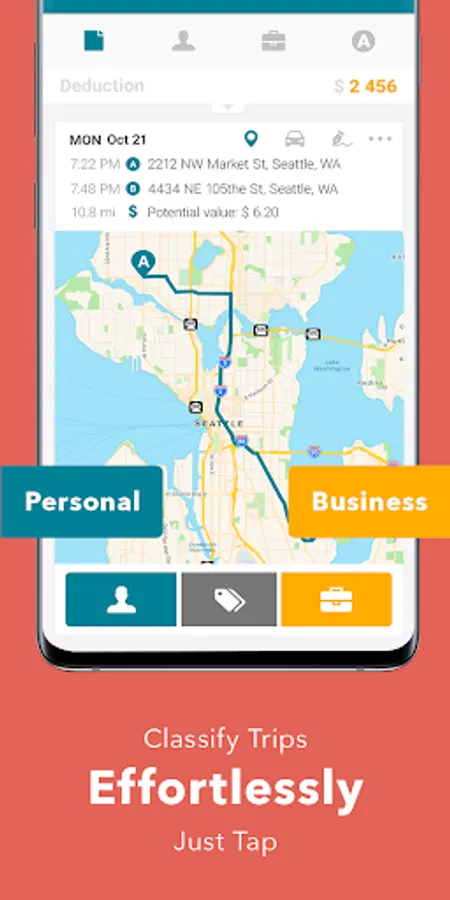 Automatic trip-logging! Trips logged by MileCatcher will be sorted into status folders (unclassified, business, personal, etc) for easy navigation and organization. Trip logs include actual route taken, start/end street address, deduction amount, etc. IRS compliant.