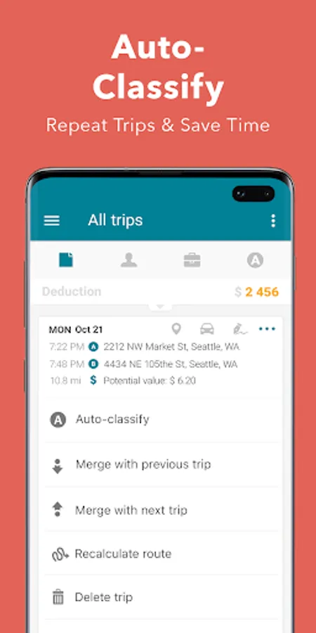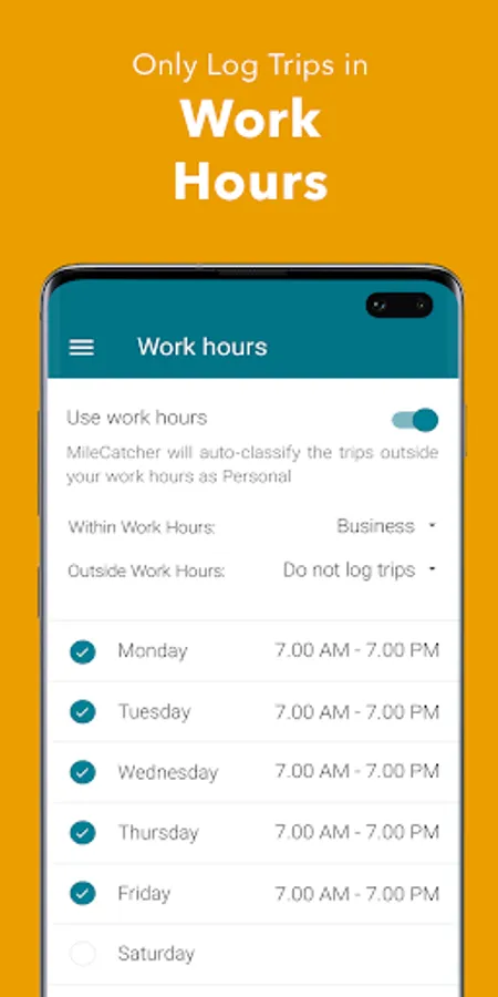 - Auto-Classify repeat trips and enable Work Hours to save time