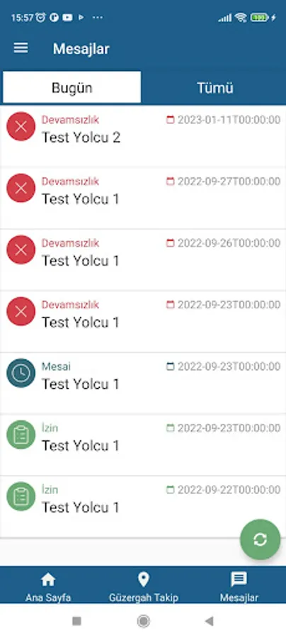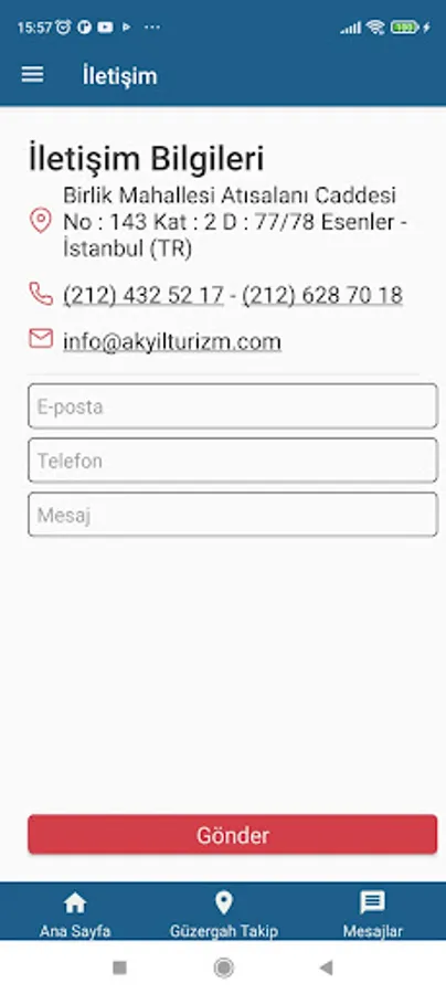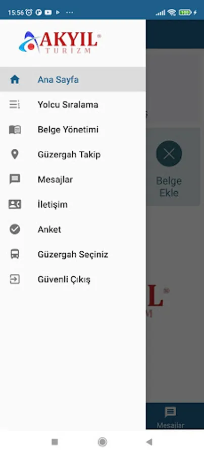 The application is specific to passenger transportation by Akyıl Turizm and consists of passenger and driver entries sections.