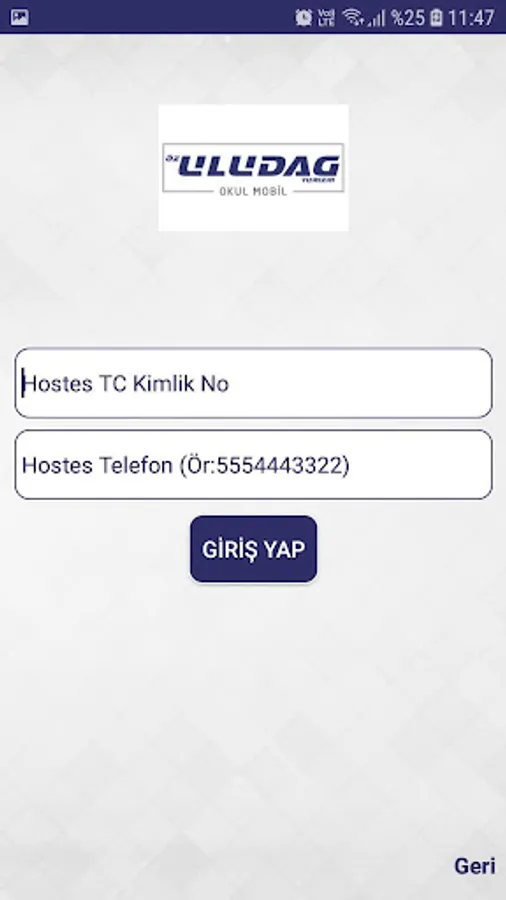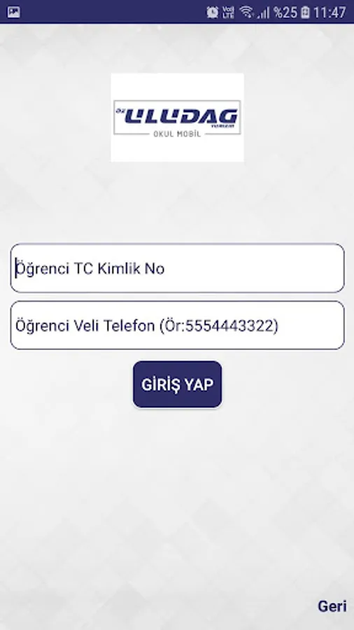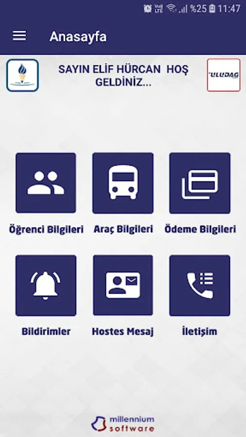 The application is specific to the schools where student transportation services are provided by Öz Uludağ Tourism and consists of parental and hostess entrances.