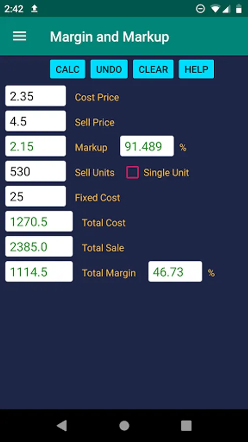 2. Retail margin, margin percent, markup, markup percent and break-event point calculation.