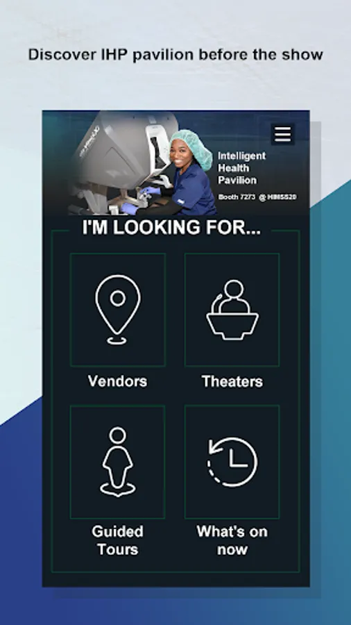 The IHP @ HIMSS 2020 Wayfinding App is offered to enhance your experience in this Destination Pavilion. Make the most of your visit and find out what's on in the two Pavilion theaters, the schedule for guided demo room tours, stories you will see demonstrated in the tours and who has a kiosk in the Pavilion.