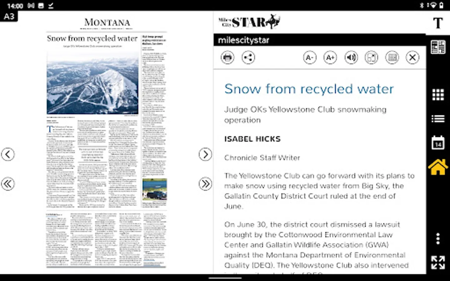 This is a digital replica of the printed newspaper