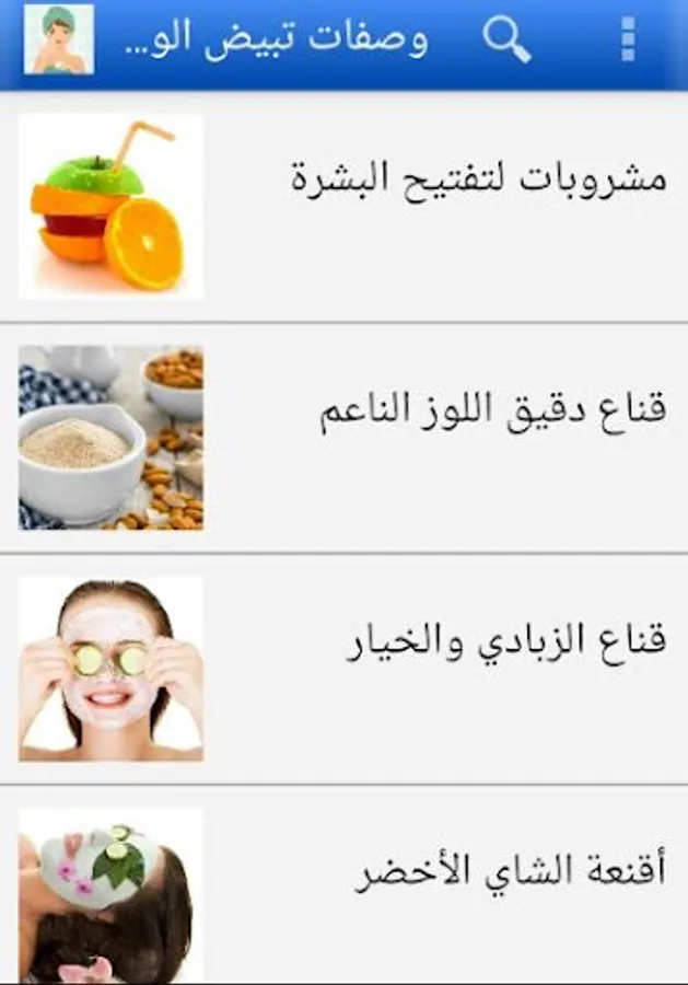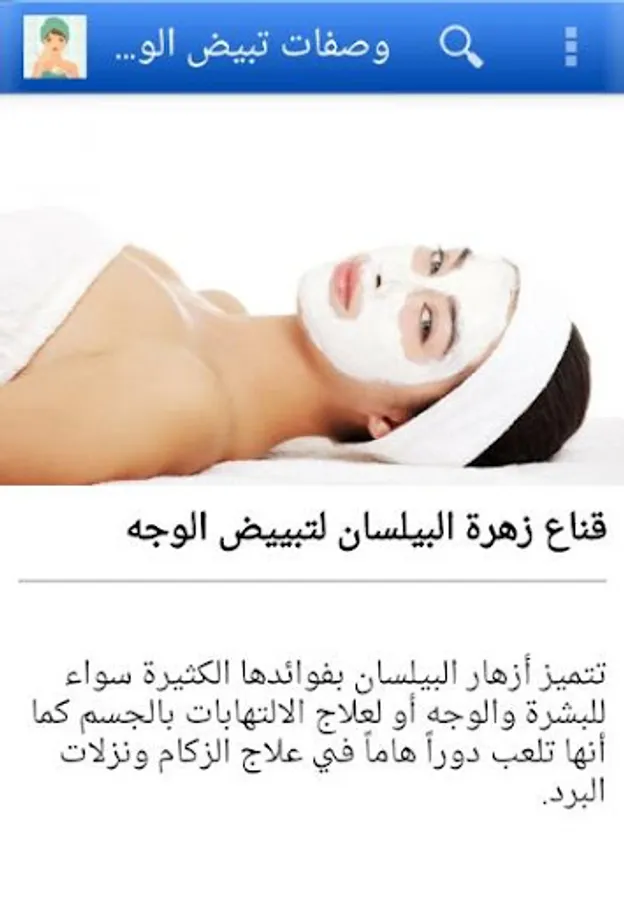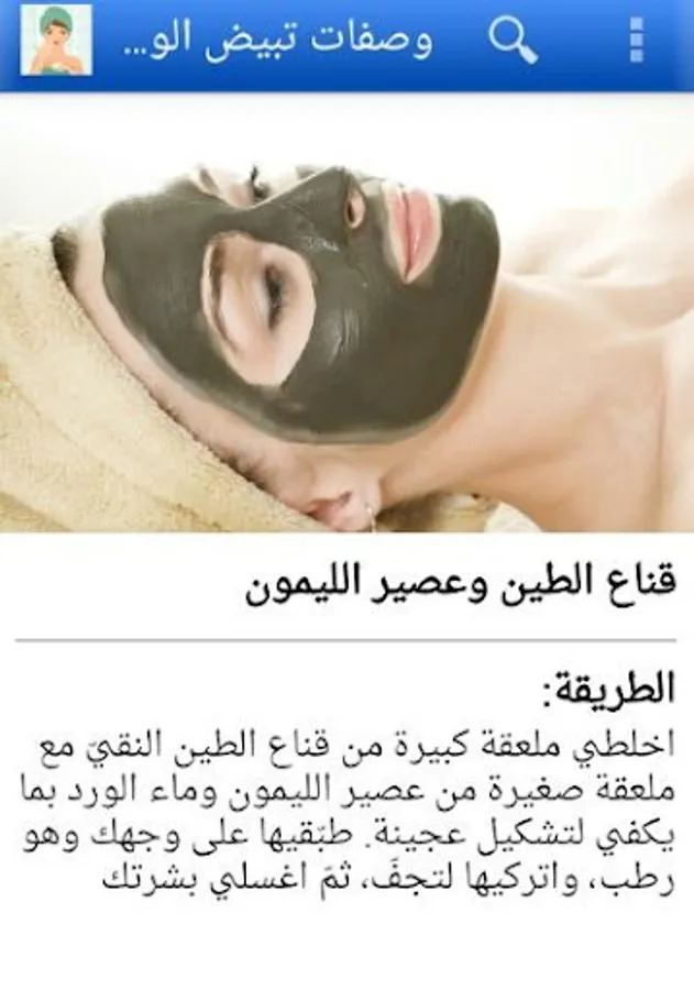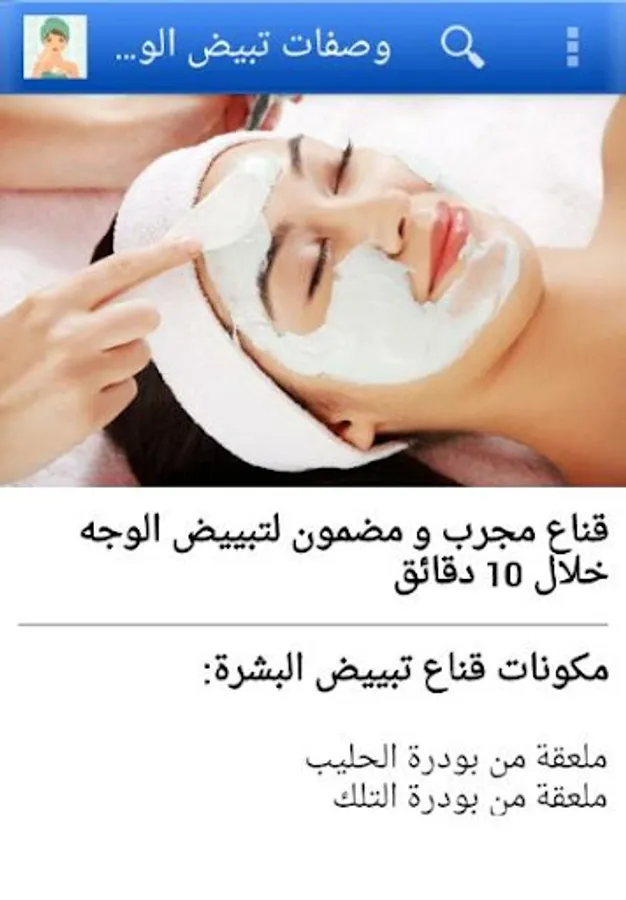 حملي تطبيق وصفات تبييض الوجه طبيعيا الذي يقدم لك الوصفات السحرية التي تمنحك الوجه الأبيض مثل الثلج والناعم مثل الحرير بوصفتها الطبيعية.