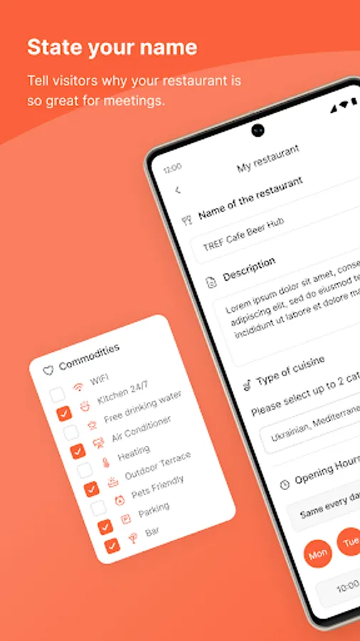Go2Meet Business - it's an additional app for business, that has their appearance on go2meet.io. Your participation will let people create hangouts in your place for meeting new people for business and hobbies, organizing offline meetings with professionals and experts.