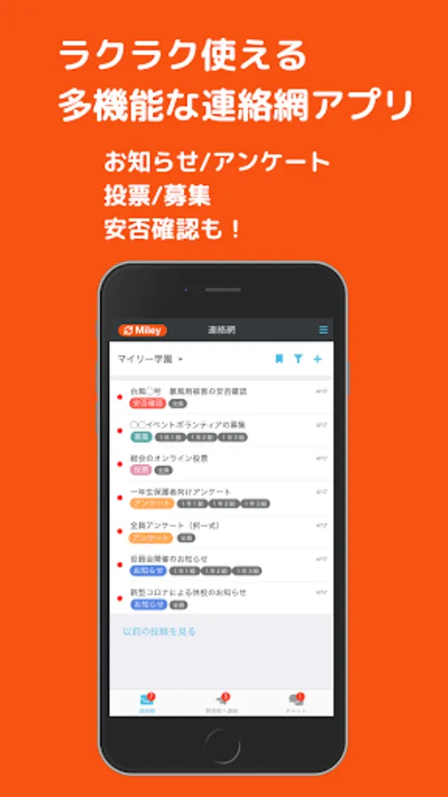 It also supports safety confirmation. Let's prepare for a disaster with easy-to-use safety confirmation. Aggregation is automatic and easy!