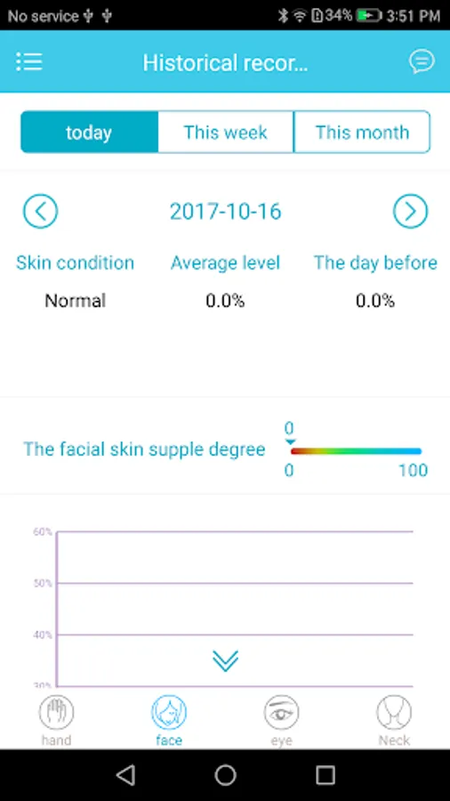 The app keeps an accurate record of each skin moisture measurement, with which it automatically generates a chart for an at-glance overview of how your skin has changed over time.