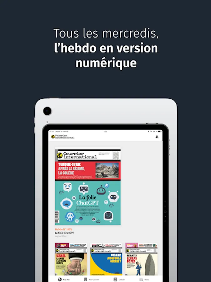 • The weekly. Read the magazine and its supplements, available in digital preview every Wednesday afternoon. Flip through the pages of the magazine and, in one click, use the reader mode for greater reading comfort.