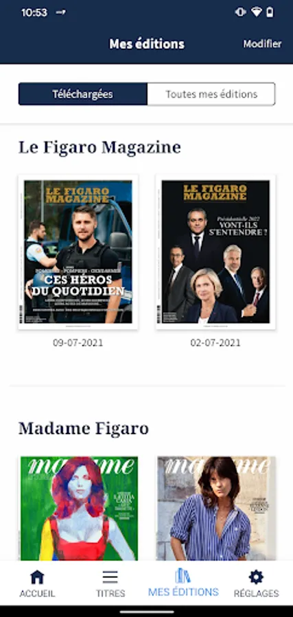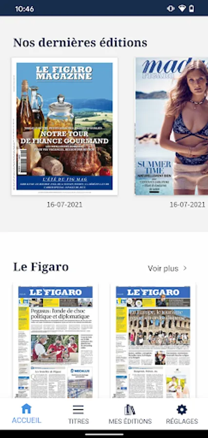 The new Kiosque Figaro application gives you access to the print editions of Figaro in PDF version: the daily newspaper, its magazines (Le Figaro Magazine, Madame Figaro, TV Magazine, etc.) and the Figaro Hors-Série.