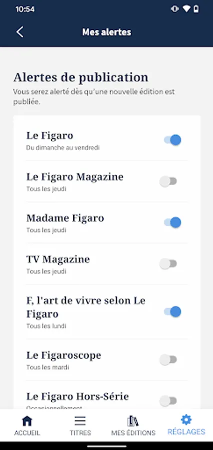 Magazines in PDF format between € 0.99 and € 1.99 (Figaro Magazine, Madame Figaro, TV Magazine, F’art de vivre, Figaroscope)