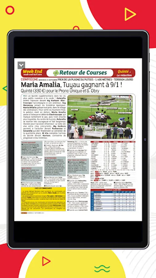 Weekend: Your digital newspaper for you to find news racing pmu, the prognosis of horse paris (quinté day ...) and the results and reports pmu