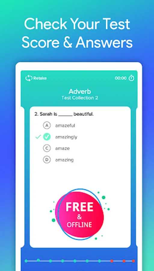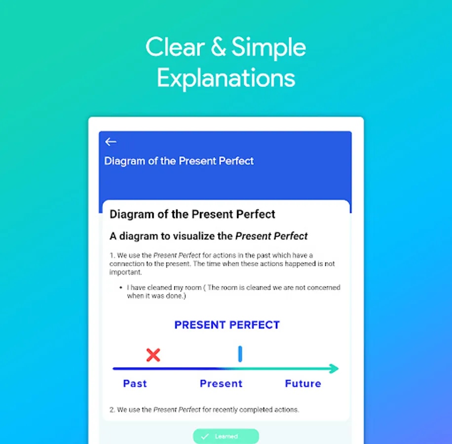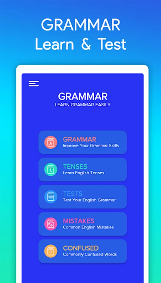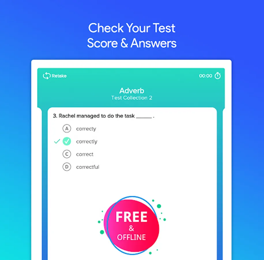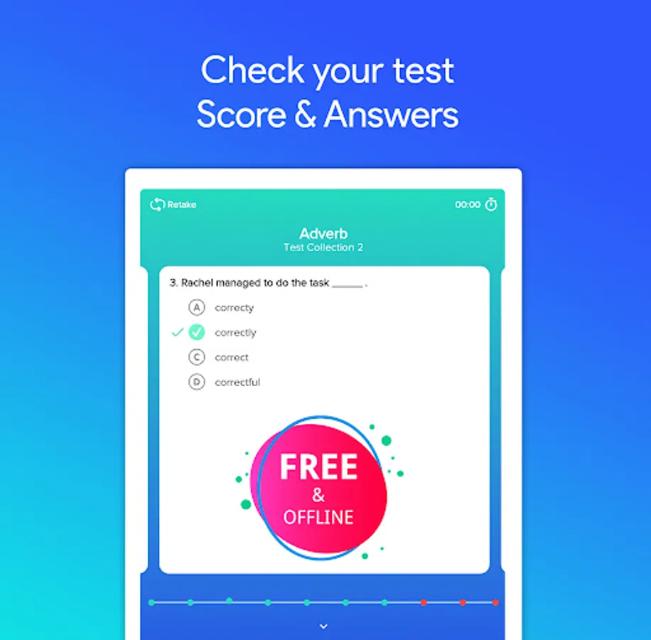 English Grammar app makes it easy to improve your English grammar and get ready for an English grammar test or just improve your writing and speaking quickly. With English Grammar app, you can study for FREE with 300 grammar lessons and 20000 tests (10000 with explanation). Best of all, you can access these features anywhere and anytime when you download our app.