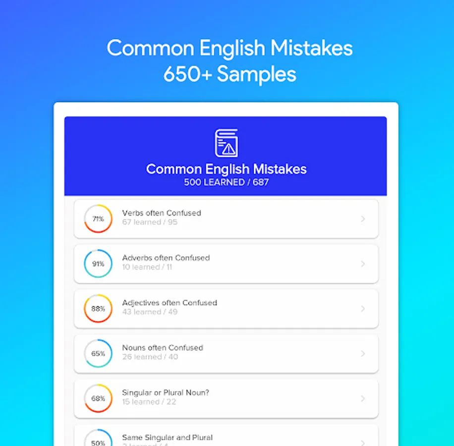 (New feature)This section includes common mistakes in English grammar rules and their usage so that you can spot the error in English grammar easily.