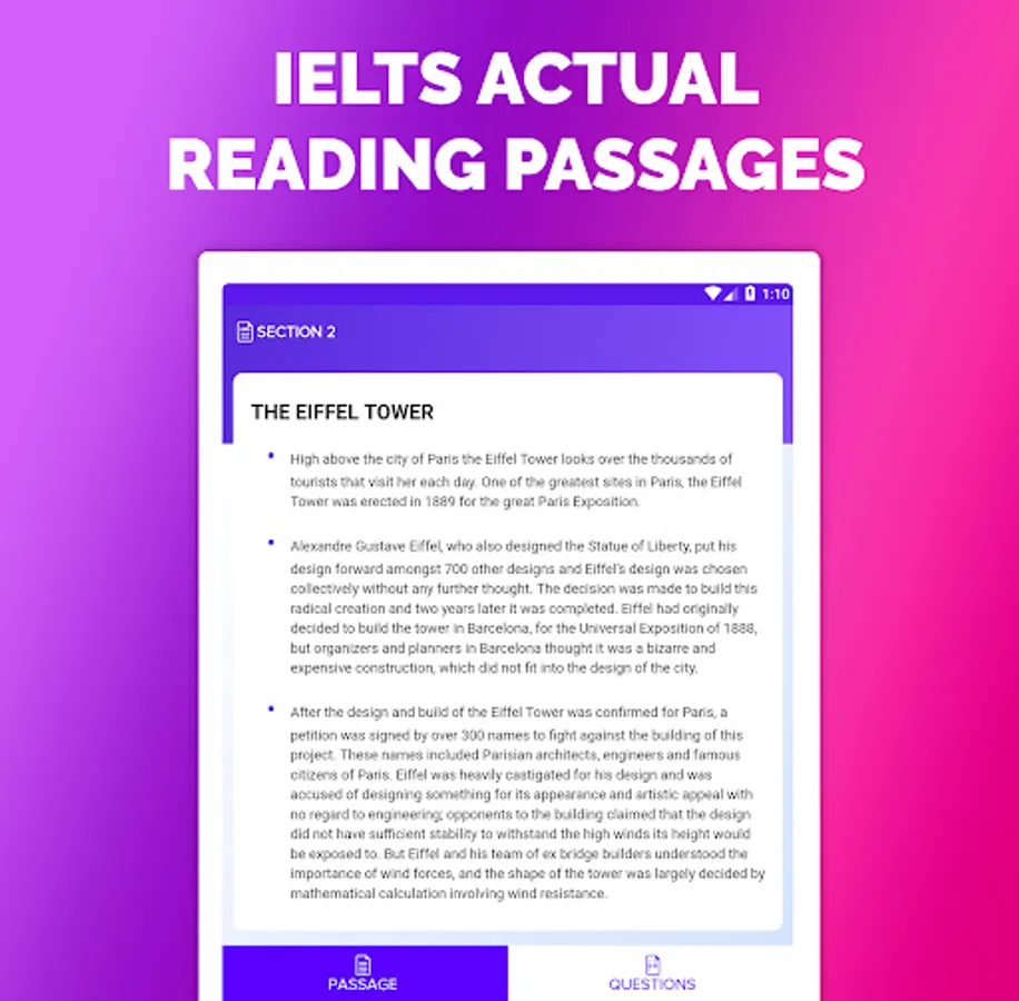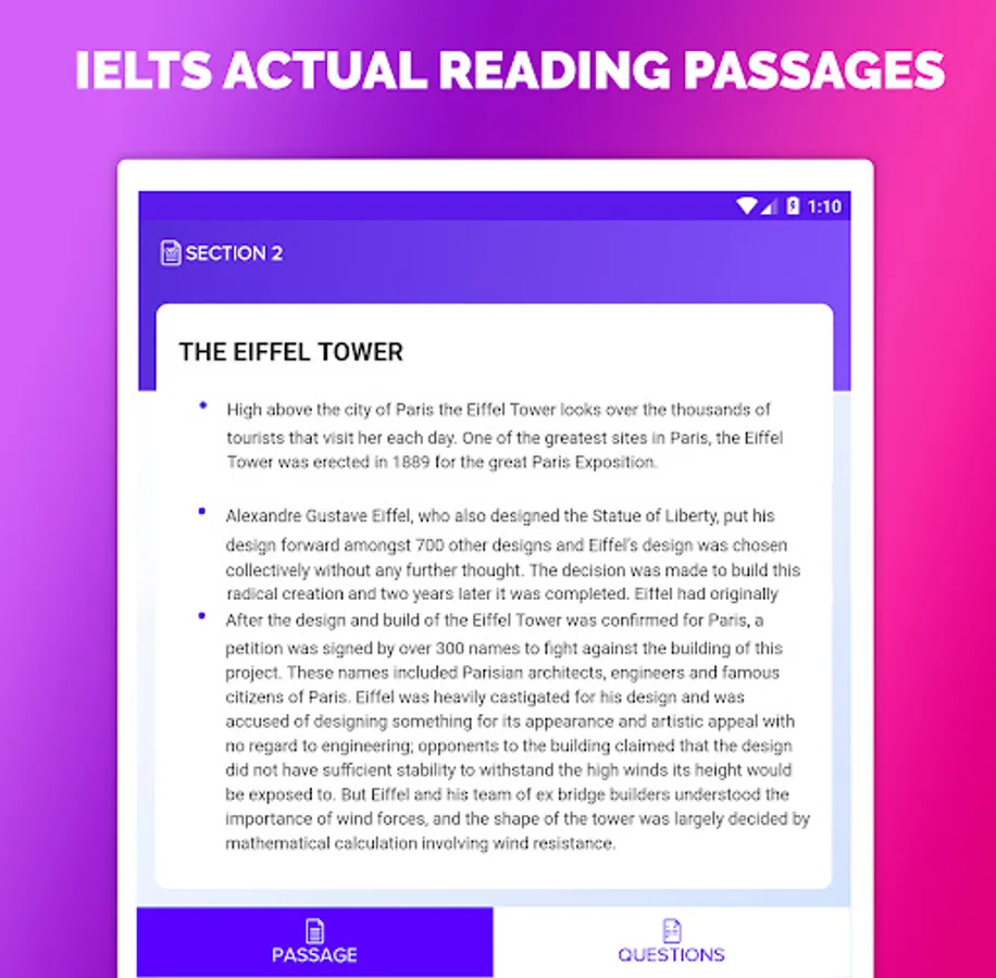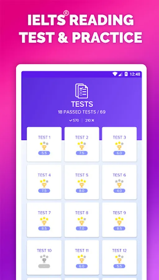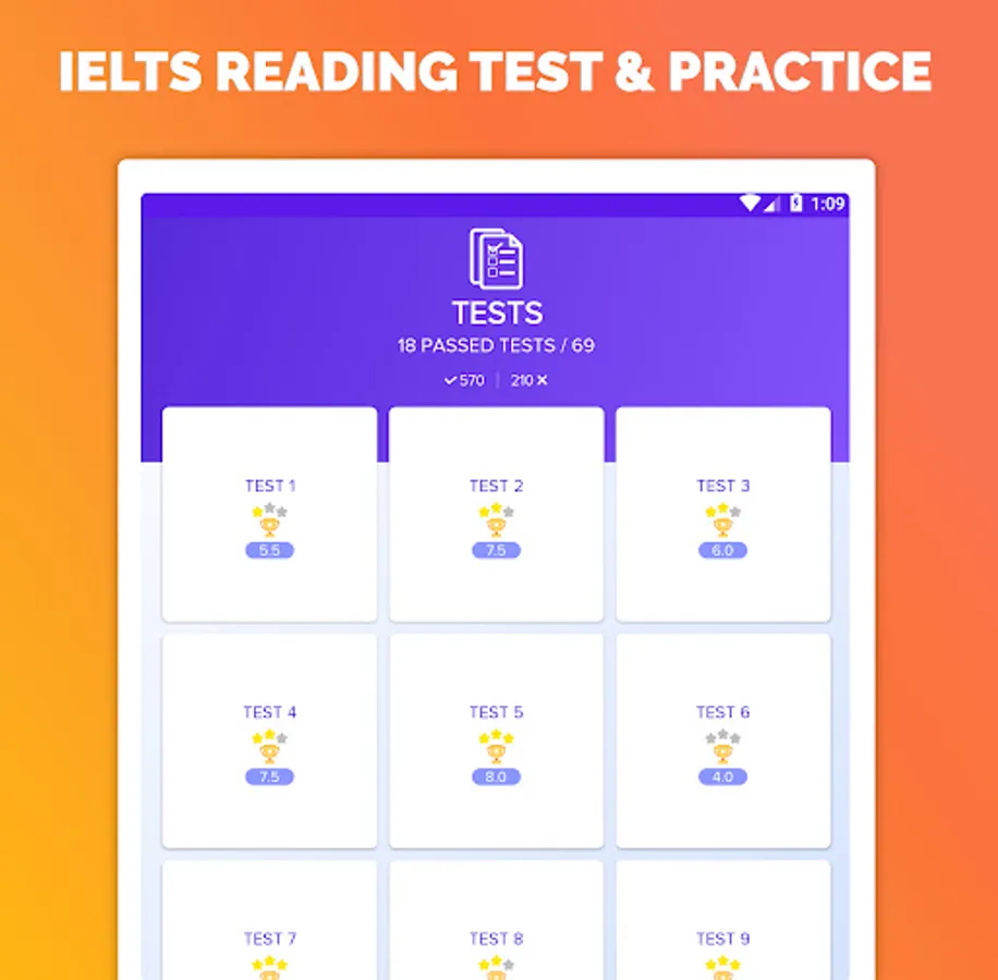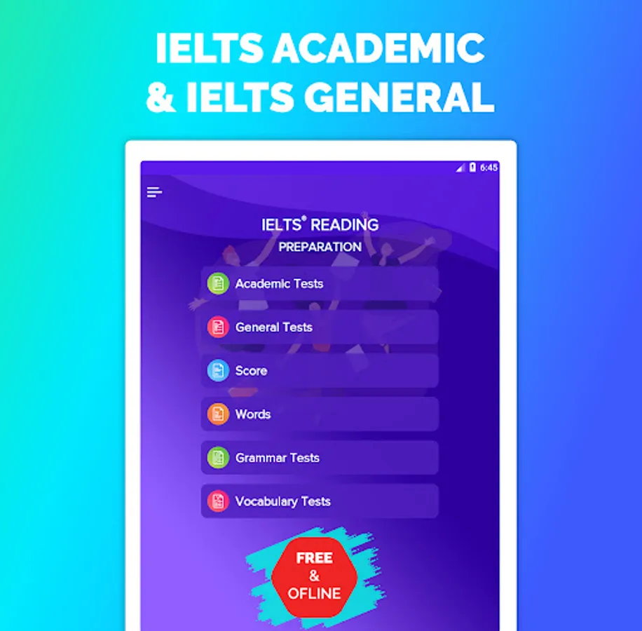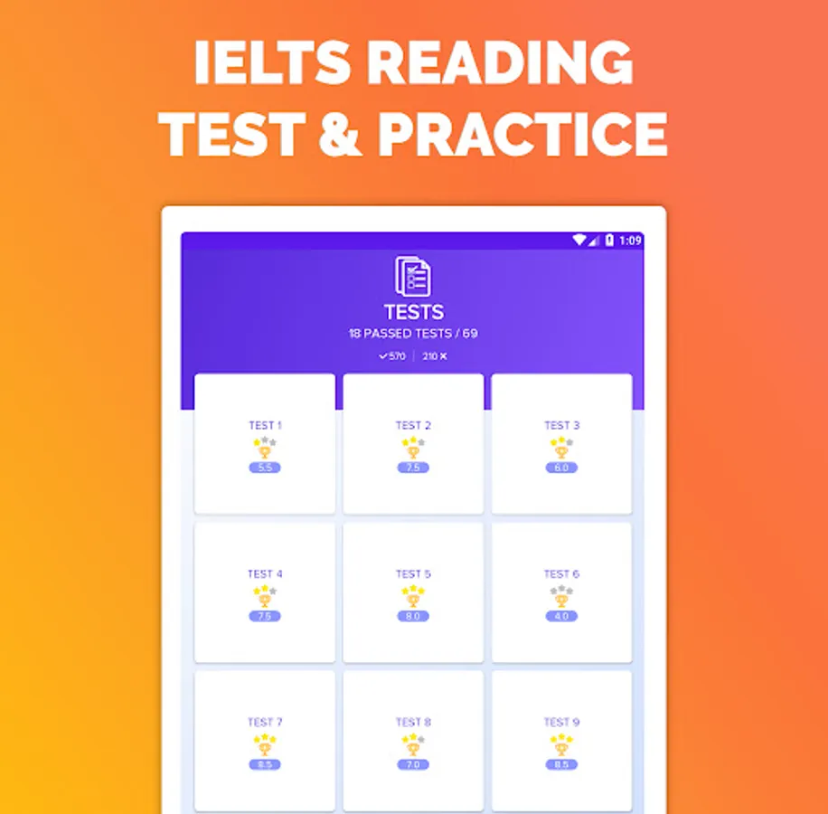 IELTS Reading Test app makes it easy to improve IELTS Reading Band score for its users who aiming for a high score in IELTS Reading. With IELTS Reading Test app, you can study for FREE with our questions, practice tests, vocabulary, and score reports with detailed analytics. Both Academic tests and General tests are covered.