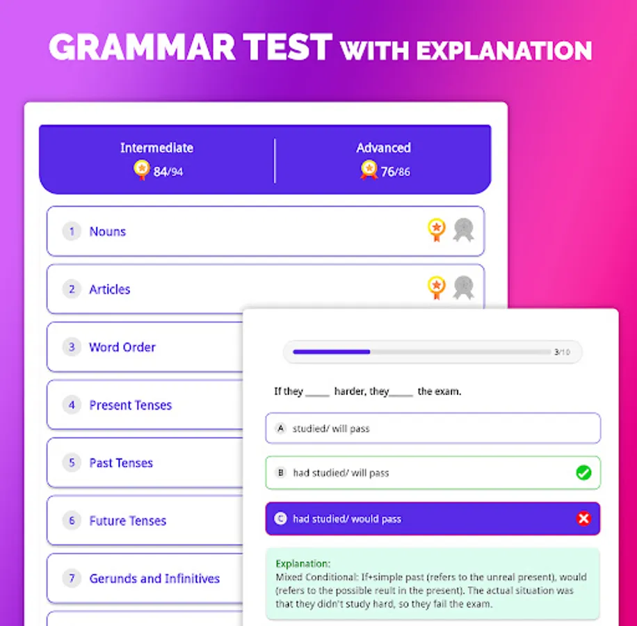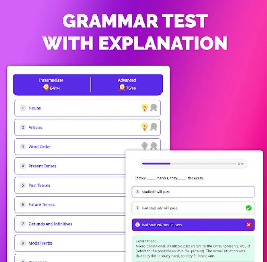 A self-study reference to practice, evaluate and improve your Grammar & Vocabulary.
