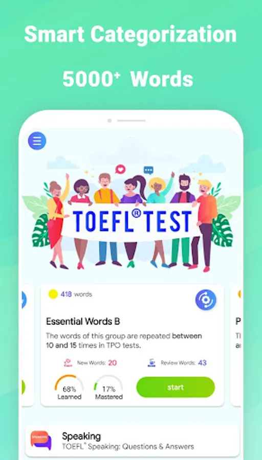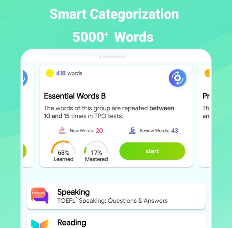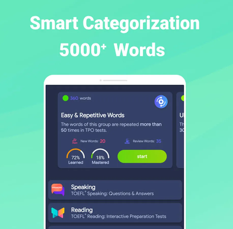 TOEFL® TPO® Vocabulary is the app that covers the most important words used for the real TOEFL® exam and help you to achieve the TOEFL® score you deserve!
