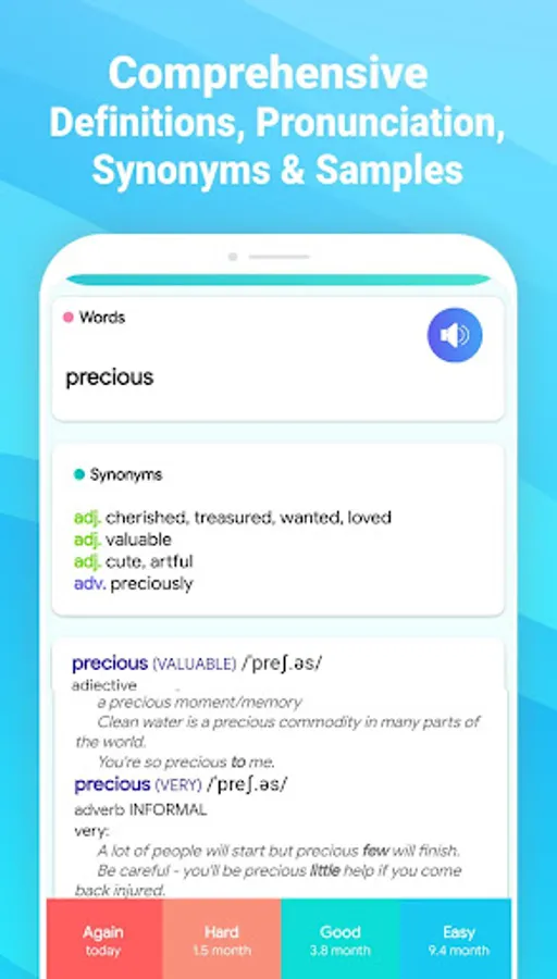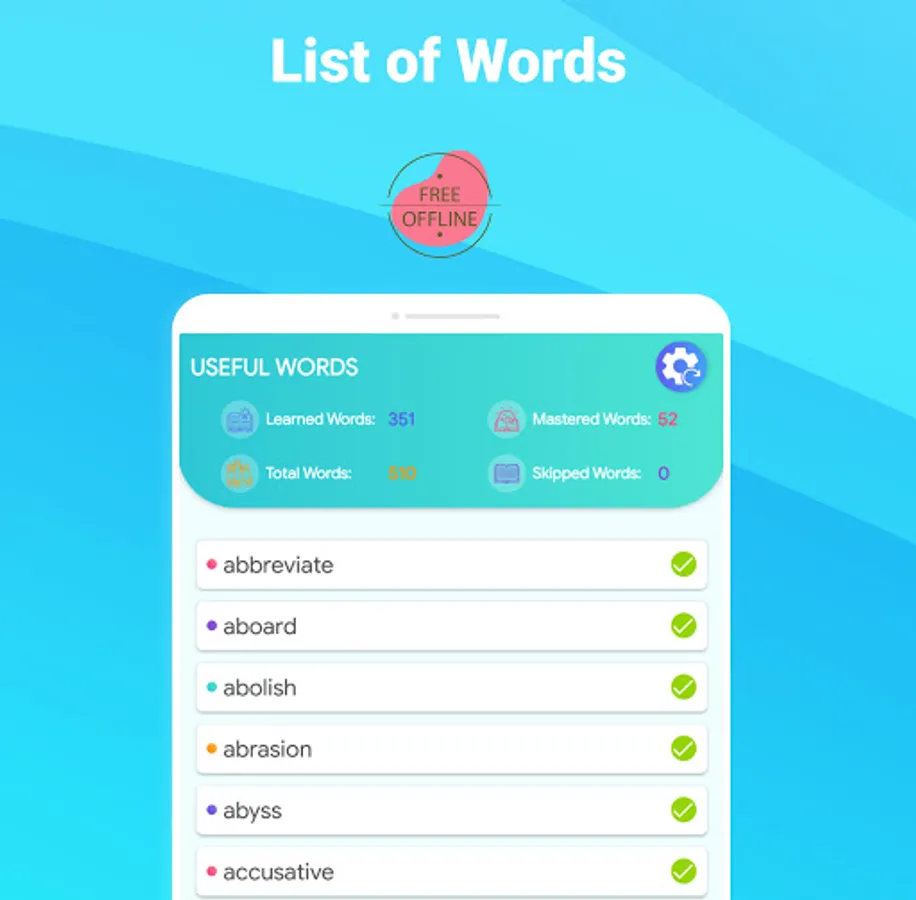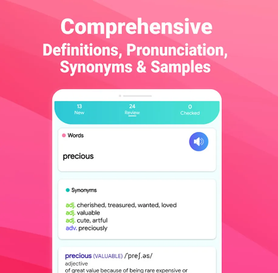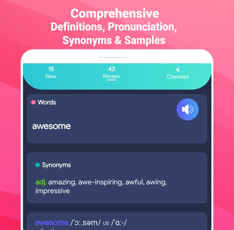 • Set a reminder to study new vocabularies in a specific time and increasing your productivity.