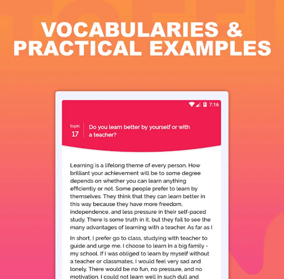 The app lets you bookmark useful essays and vocabularies so that you can easily go back to specific content.