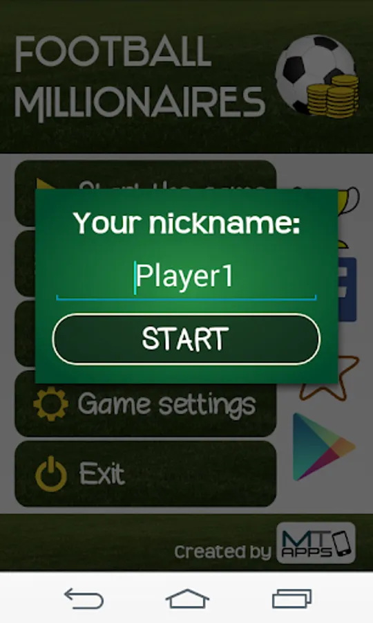 Top scores are sorted via virtual money won and points awarded. If two players won the exact amount, points scored decide of the position in a table. Your scores at the end of game can be submitted to http://games.mtapps.pl/pm Simply press 'Submit your score' button at the end of game. You can send your own suggestions for new questions via email on: info@mtapps.pl
