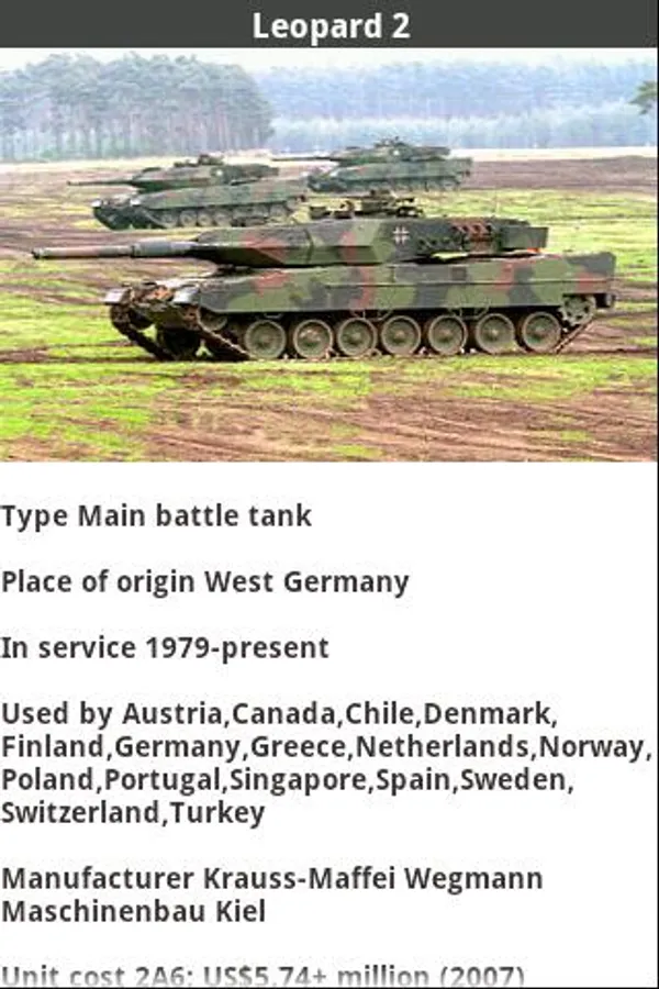 Get the most comprehensive Military Armored Vehicles Handbook on Android! Detailed information on hundreds of Tanks, IFVs, APCs, and Howitzers are in this app. Along with the Handbook, learn to recognize the world's Military Armored Vehicles of through a game of visual identification!